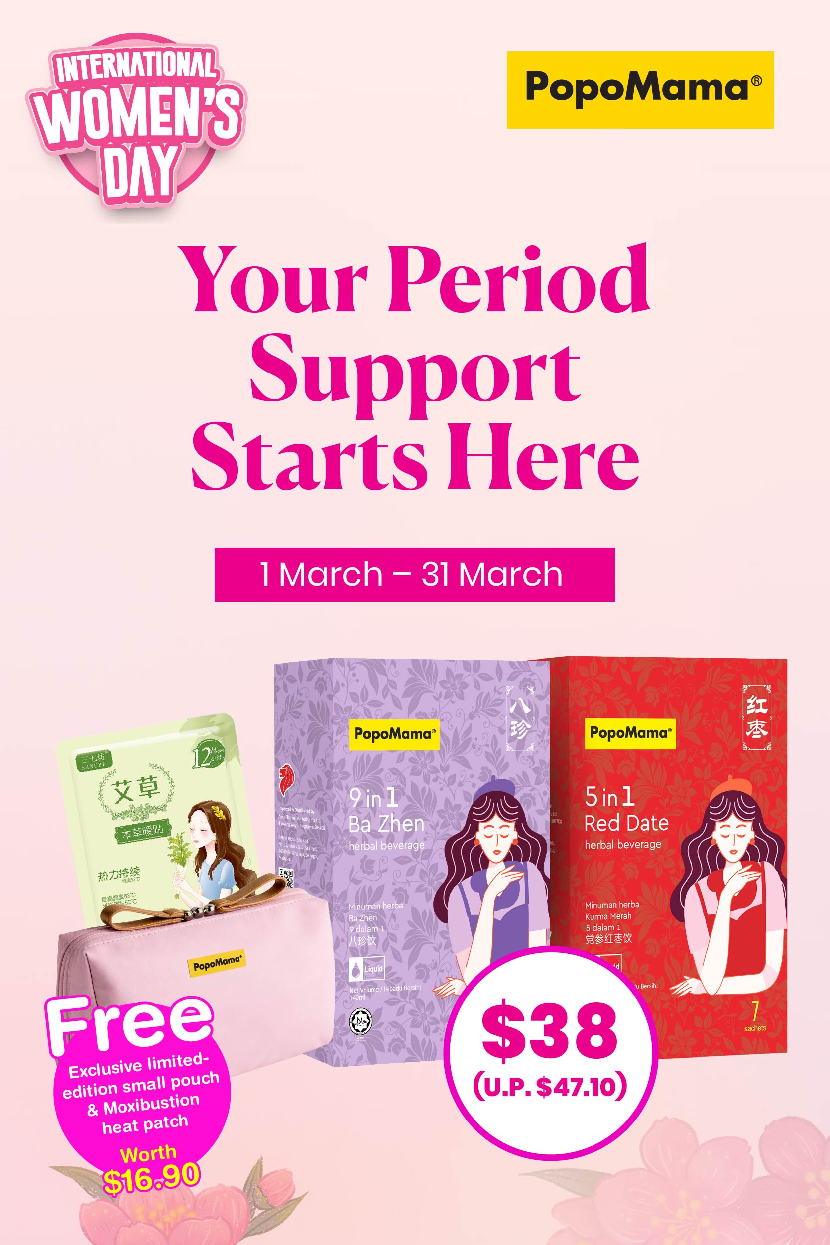 This popomama bazhen really helps to reduce my premenstrual symptoms and symptoms during period. It helps to reduce my bloating and cramp symptoms.