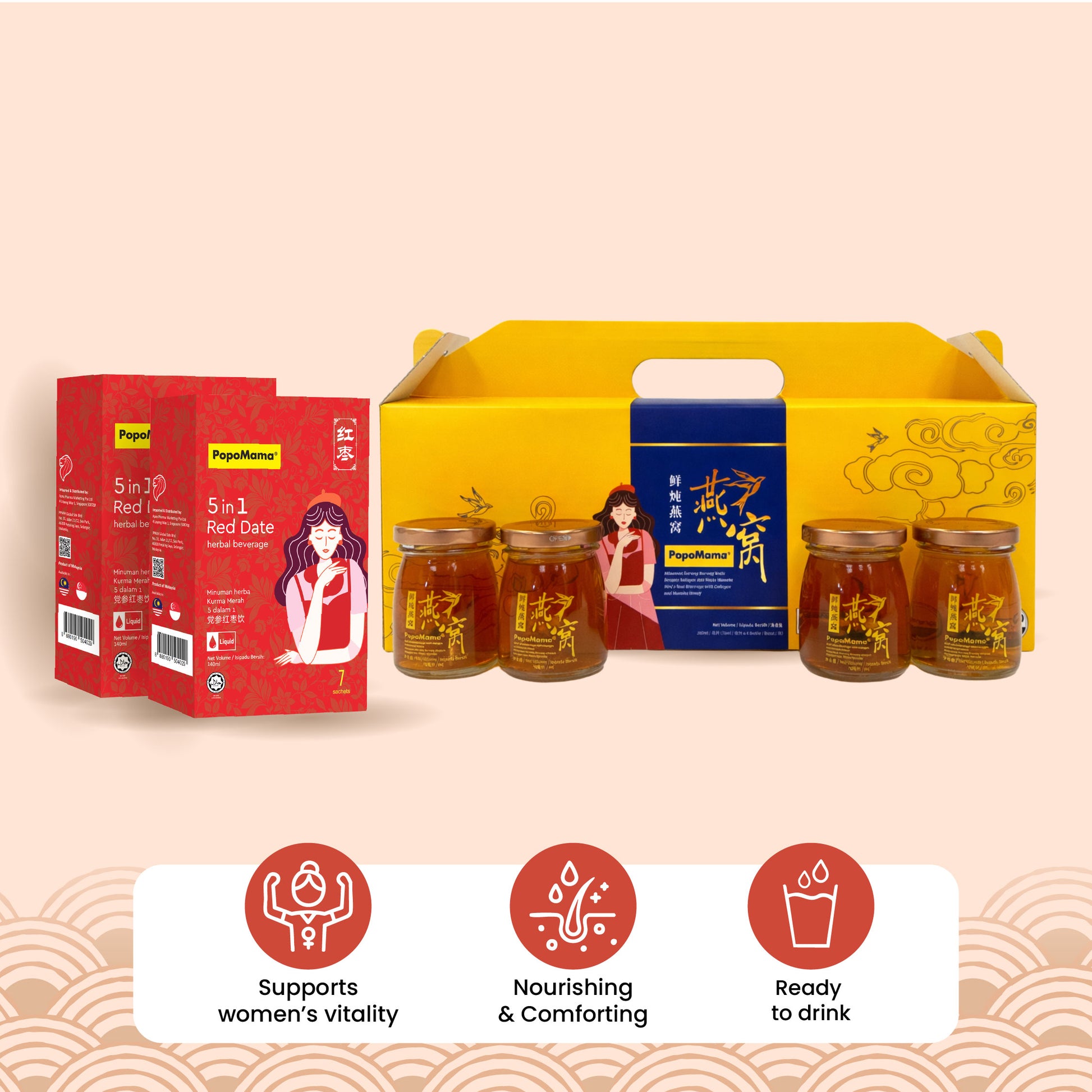 Our most gifted Lunar New Year set - combining premium bird's nest nourishment with a comforting red date ritual for women