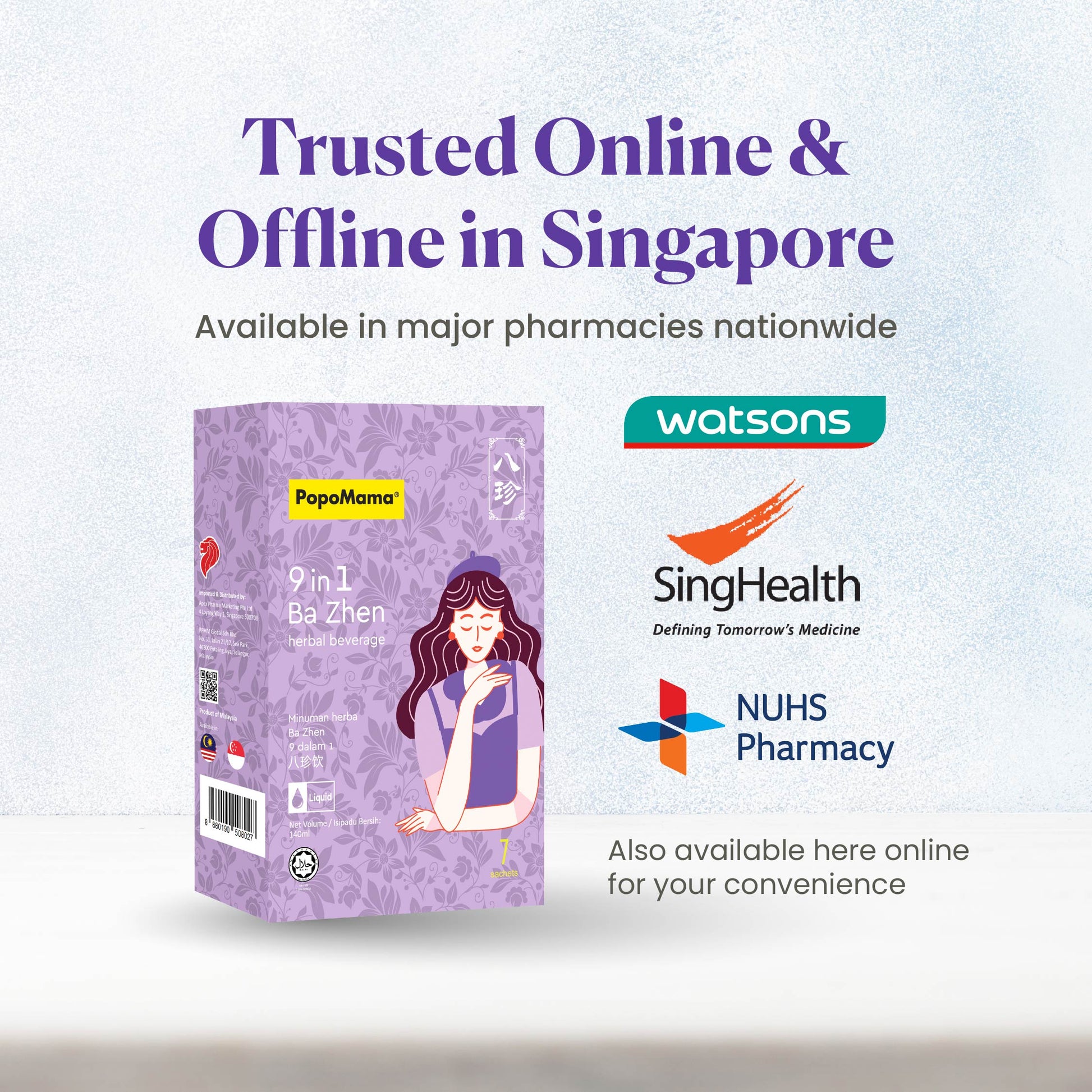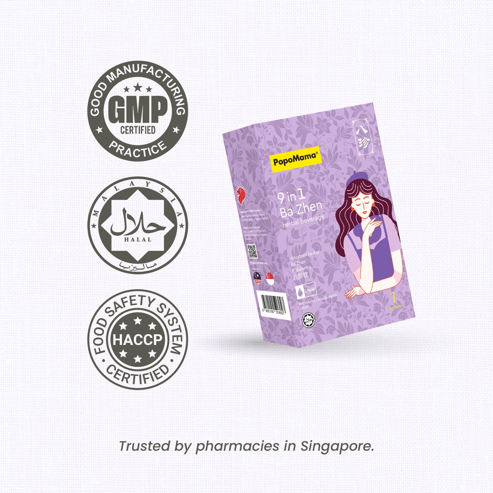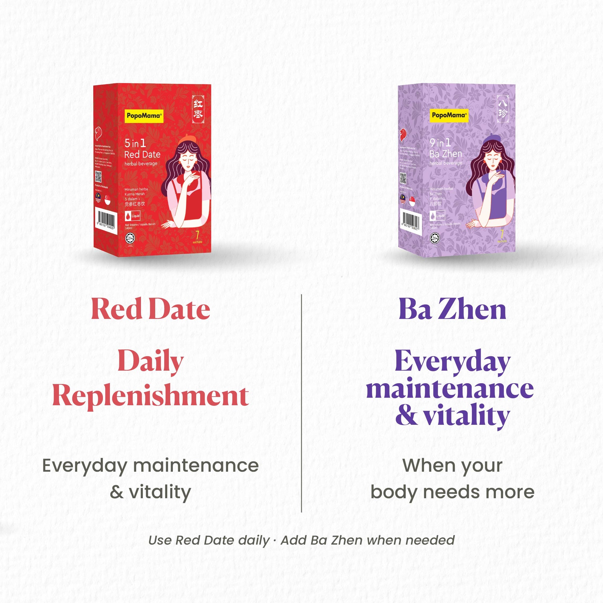 PopoMama 9 合 1 八珍草本饮品旨在更深层次地支持月经周期,采用传统的八珍草本配方,以现代食品为基础,即饮形式制成。